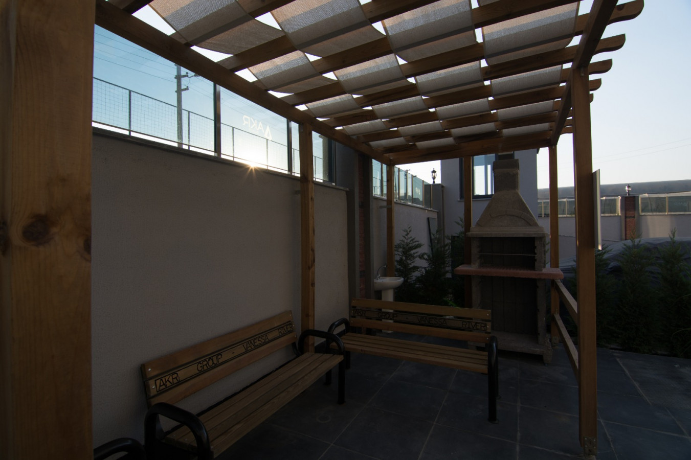 Сам комплекс был сдан в эксплуатацию летом 2021 года и имеет развитую инфраструктуру. Во дворе открытый бассейн, беседки с мангалом, открытая парковка, генератор на случай отключения электричества. На первом этаже комплекса есть крытый зимний бассейн, сауна, тренажерный зал, турецкая баня.