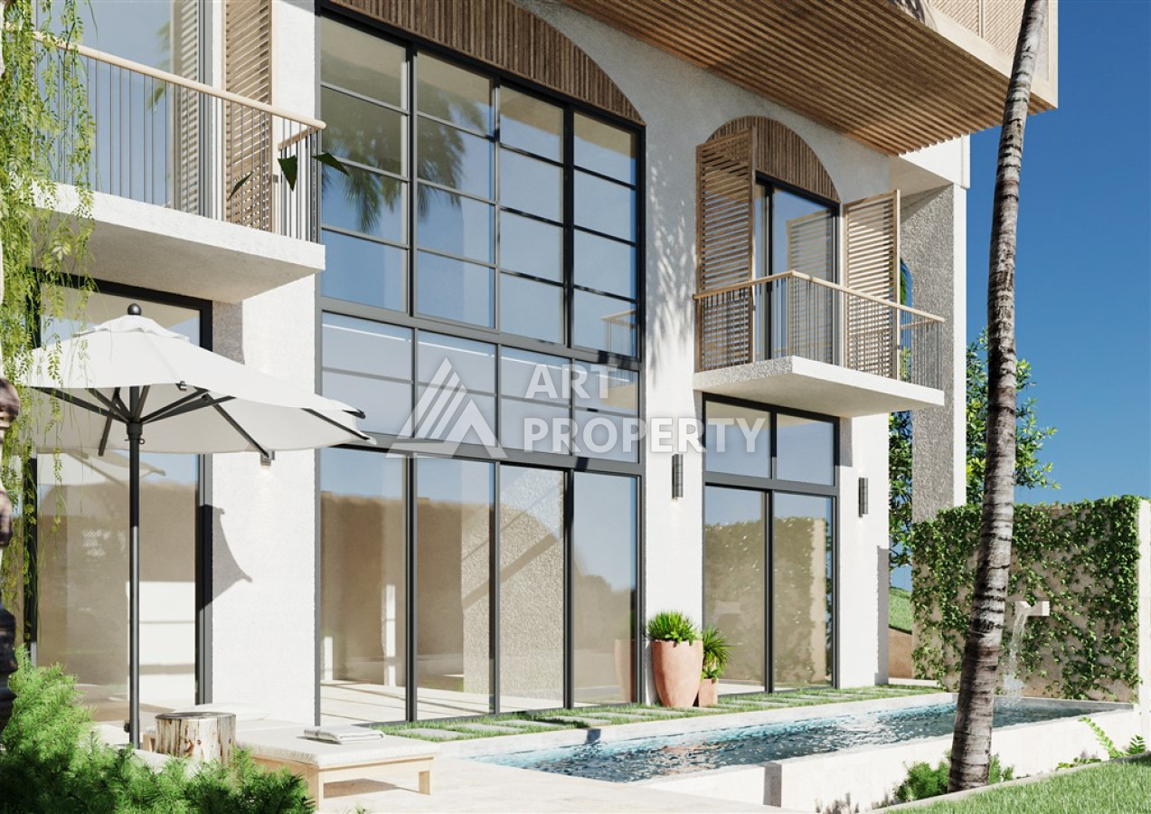 Апартаменты в продаже: 1+1, пентхаусы 2+1 и 3+1, садовые дуплексы 4+1 с участком. Двухуровневые апартаменты с собственными бассейнами, костровыми чашами. Площадью от 43 до 441 м2.